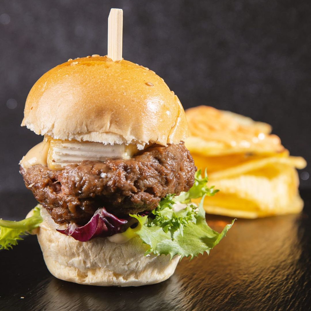 2 mini burger de vaca o chicken crispy con patate fritte